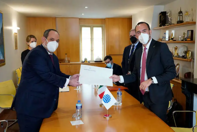 该申请书由意大利总理马里奥·德拉吉签署,由意大利负责外交事务的副国务卿曼里奥·迪斯特凡诺递交给国展局秘书长迪米特里·科肯彻斯,意大利驻国展局代表马西莫·里卡多大使同时在场。