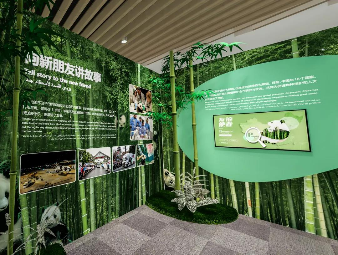 10月4日-10日,2020年迪拜世博会中国大熊猫保护主题展在中国馆一层多功能厅举办。展览占地面积近400平方米,以“同一片蓝天·同一个梦想”为主题,以展示大熊猫科研保护成效宣介习近平生态文明思想、中国生态保护成果。