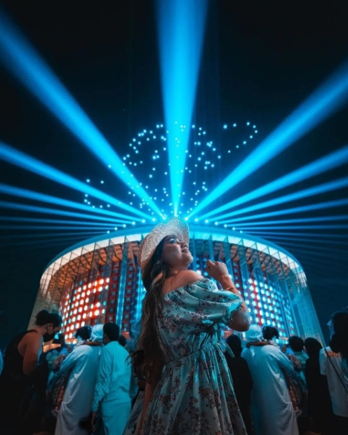 无人机矩阵表演同样是不能错过的一大精彩看点。集群灯光秀在中国馆上空闪耀着华彩,无人机的动态编队不断变换着图案,在夜空中展开一幕幕灵动美丽的画卷,让游人纷纷忍不住驻足观看。