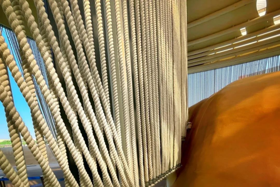 航海是意大利馆的重要元素,悬挂在展馆的绳索同样也饱含着可持续性的创造理念。由塑料制成的航海绳索总长度超过70公里,相当于回收了200万个塑料瓶!