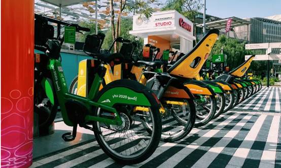为了满足游客便捷、环保的出行的需求,世博会主办方特意实施了最新的共享单车方案。近期已有230辆共享单车和23个共享单车停靠点部署在世博会的各个交通枢纽,只需下载Careem Bike app就可以让你畅通无阻地在世博园里穿行。