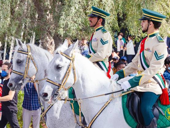 12月2日中午12:45分,阿联酋国庆日游行队伍开始带你欣赏“世界的色彩”(游行活动名称)!