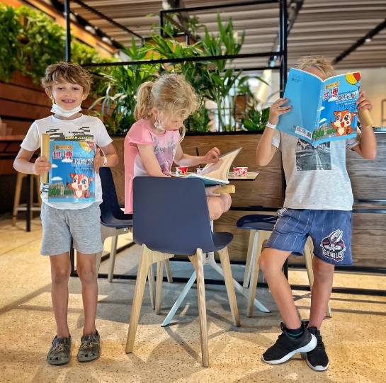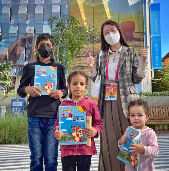 和迪拜世博园区的小朋友一起阅读世博会博物馆WE Kids 儿童双语漫画读物《世博趣探秘》。