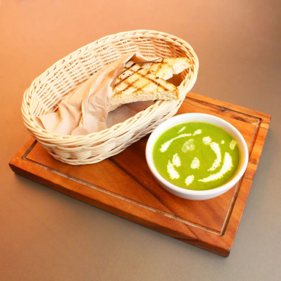 薄荷青豆汤配椰子奶油配吐司