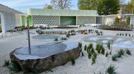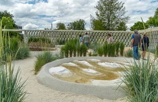 在被由3D打印技术制成的墙壁所包围的花园里,你会发现在盐水中茁壮成长的植物:盐角藻,红树林,微藻和海草。游客们得以欣赏这些植物的独特之美。